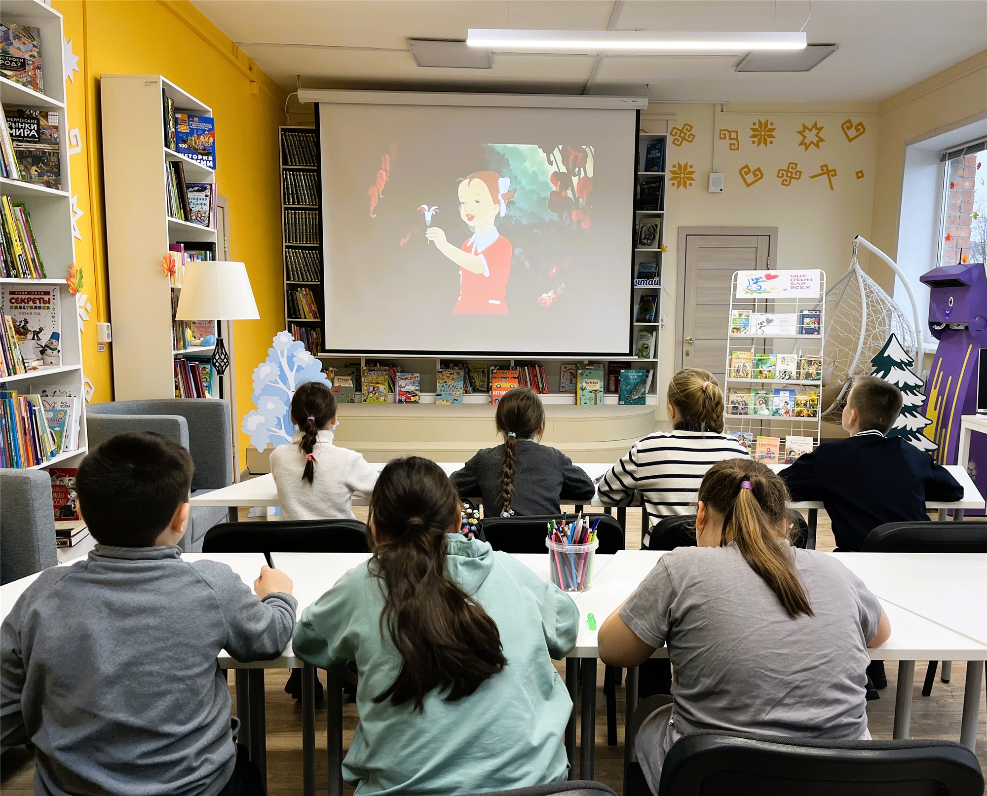 Библиотекарь открыла встречу, подчеркнув значимость дружбы, отзывчивости и доброты – тех основ, на которых строится общение и взаимопонимание между людьми. Дети вместе рассуждали о том, что люди с ограниченными возможностями, как и все, стремятся к полноценной жизни, хотят посещать общественные места и испытывать радость от общения. В игровой форме ребята приняли участие в викторине, вспоминая литературные произведения, где герои проявляли милосердие и совершали добрые поступки. Особое внимание было уделено сказке Валентина Катаева "Цветик-семицветик". Дети живо обсуждали поступок Жени, которая использовала последнее желание, чтобы помочь больному мальчику Вите. Затем посмотрели мультфильм «Цветик-семицветик», по одноименной сказке В. Катаева. Кульминацией мероприятия стало создание "цветика-семицветика" своими руками. В каждый лепесток дети вписали пожелания для людей, которые, несмотря на трудности, достигают выдающихся результатов. К мероприятию оформлена книжная выставка "Мир один для всех", предлагающая читателям произведения, посвященные теме сострадания и дружбы.