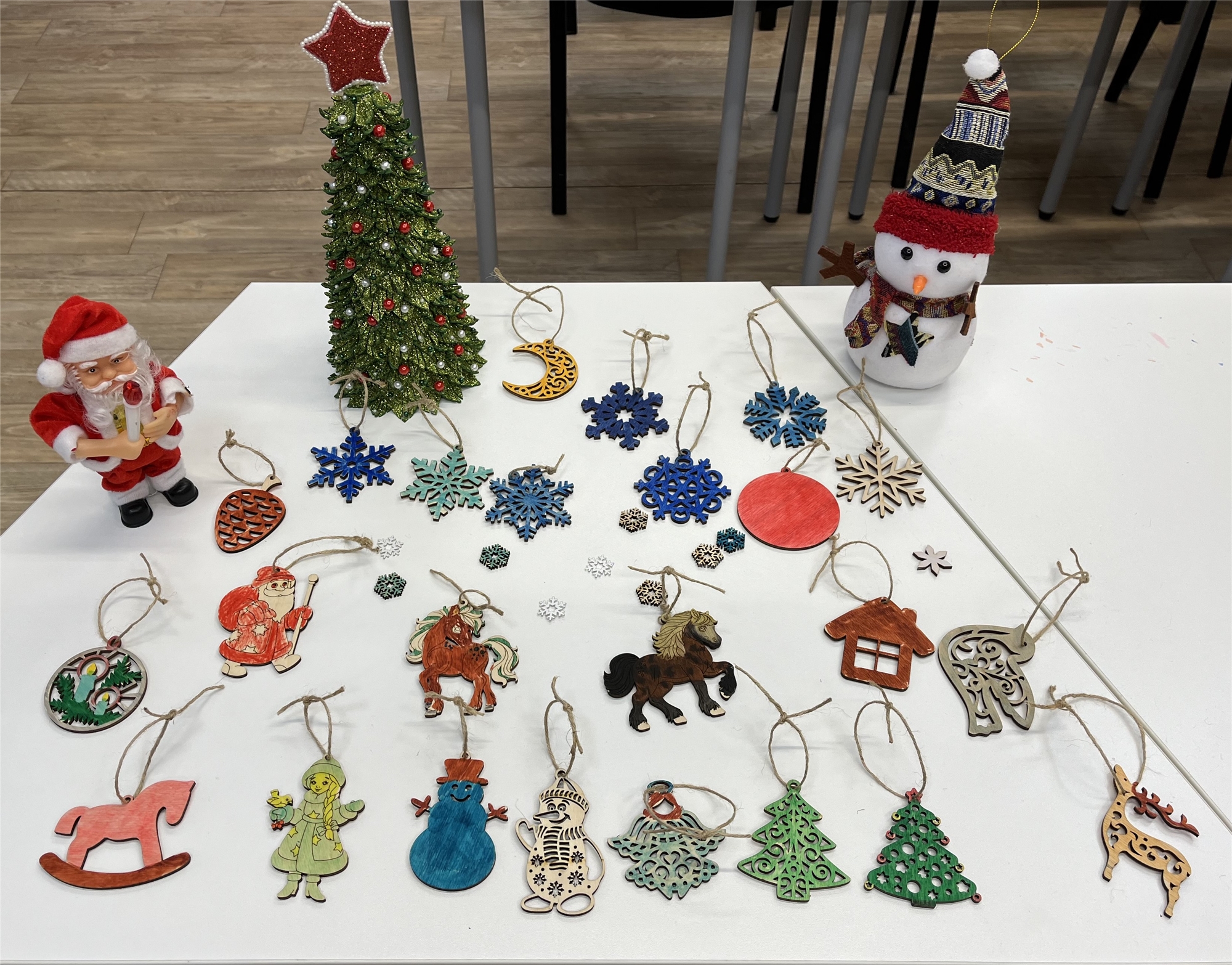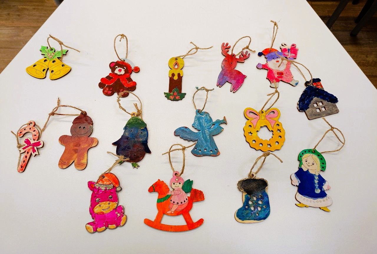 И вот, накануне дня рождения нашей ёлочки, юные мастера из клуба «Мозаика» проявили настоящую фантазию! Они смастерили для именинницы роскошный наряд и украсили её самыми красивыми игрушками. Благодаря их стараниям, наша ёлочка стала ещё наряднее и праздничнее!