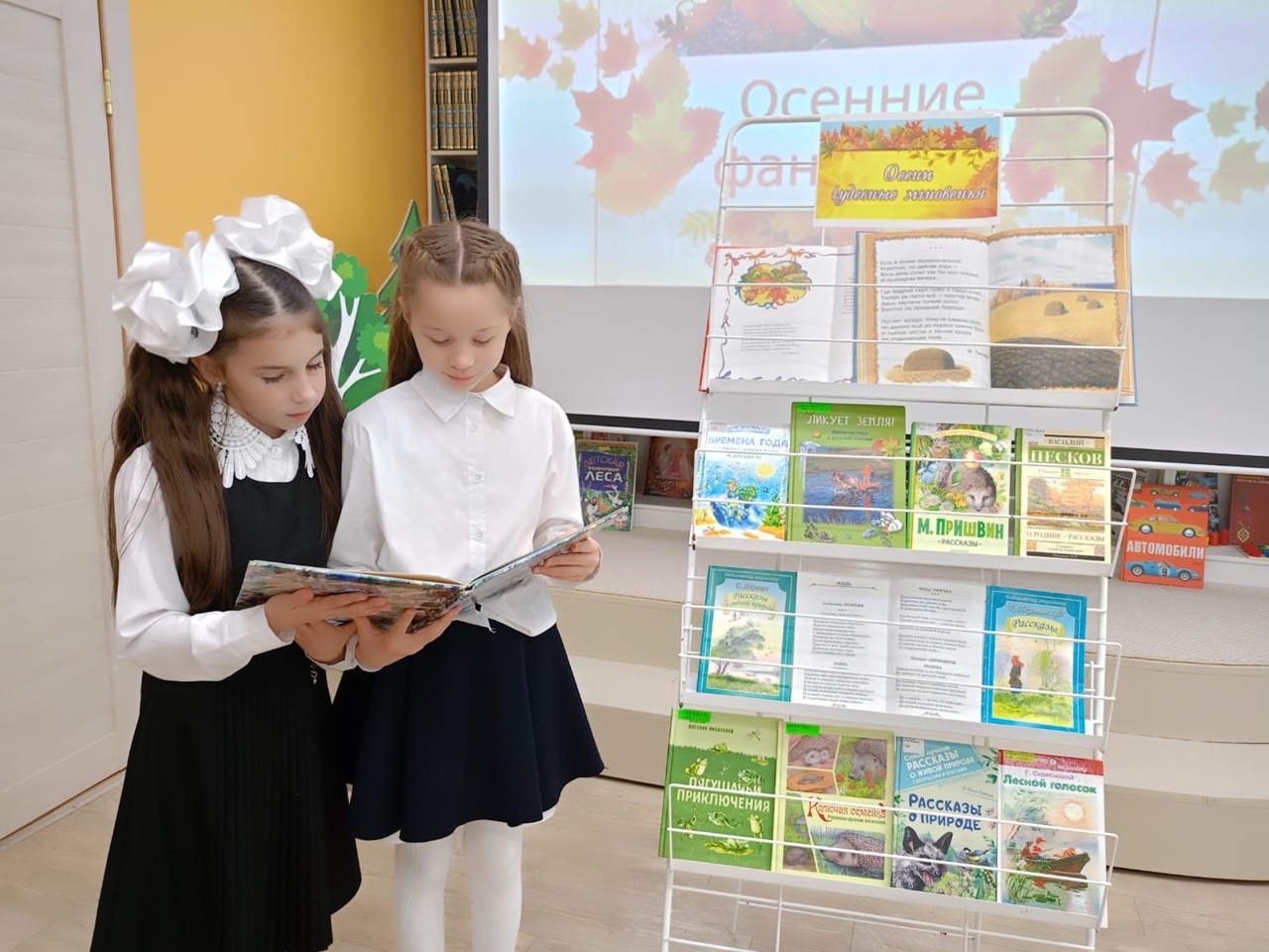 В рамках нашего мероприятия прошла замечательная книжная выставка под названием «Осени чудесные мгновенья». Юные читатели смогли погрузиться в мир русской классики и открыть для себя произведения таких мастеров слова, как Г. Скребицкий, М. Пришвин, К. Паустовский, С. Аксаков, с удивительной любовью описывающих красоту и очарование осенней поры.