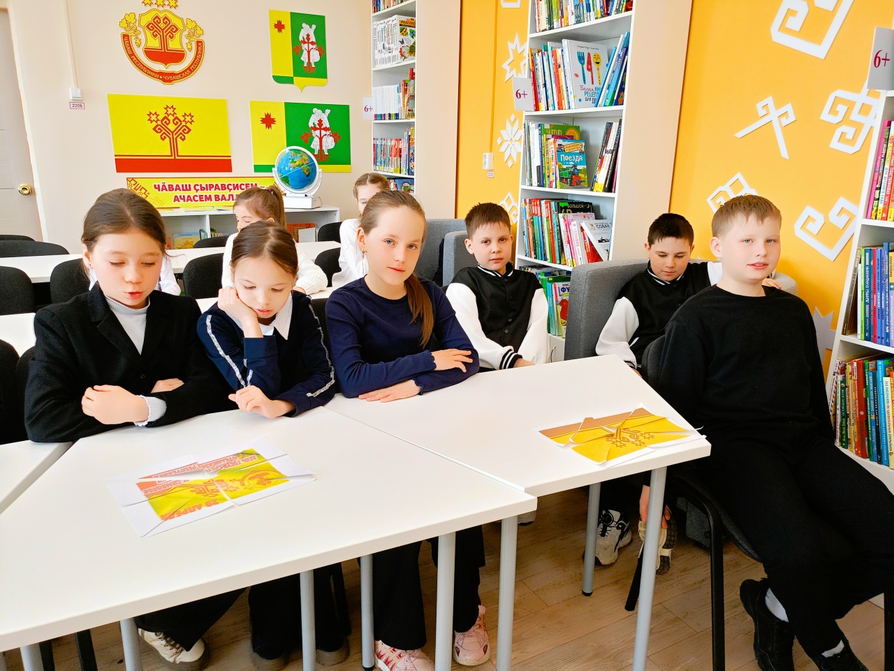В преддверии этого знаменательного события в Аликовской детской библиотеке прошел познавательный час геральдики под названием «Мы символами Чувашии горды». Юные гости библиотеки погрузились в мир государственных символов Чувашии. Библиотекарь с увлечением рассказала о значении каждого элемента, изображенного на гербе и флаге республики, раскрыла смысл цветов и поведала о глубокой символике трех солнц и древа жизни.