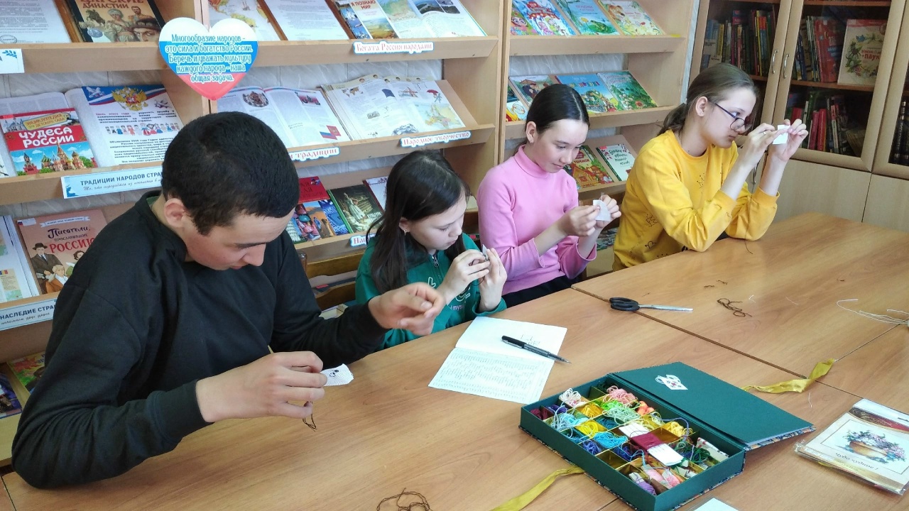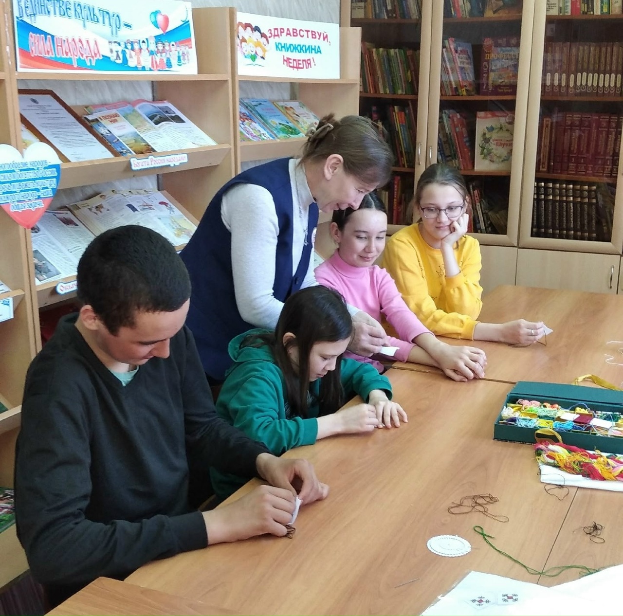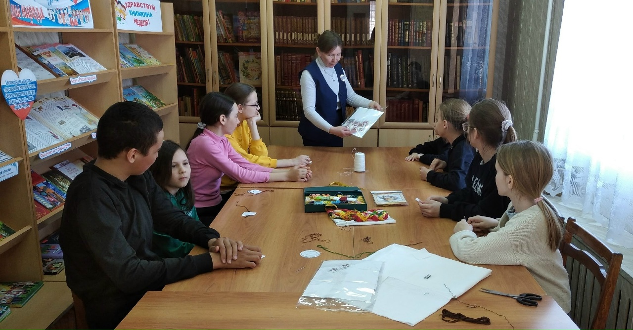 В рамках Всемирного дня творчества и проекта Главы Чувашской Республики «Ярко в Чувашии» в Большевыльской сельской библиотеке прошёл мастер-класс «Брошь-оберег» по программе "Мир чувашской вышивки".