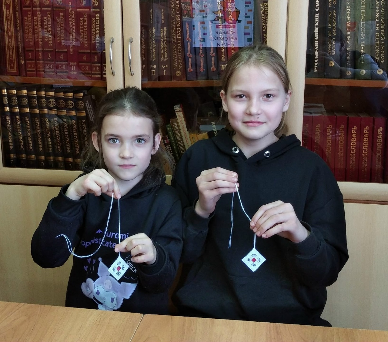 Ребята своими руками создавали маленькие, но очень красивые броши-обереги. Было видно, как они старательно подбирают нитки, выводят первые стежки и радуются результату. Мастер-класс очень понравился всем — и детям, и взрослым. Глаза участников горели, а в конце каждый унес домой не просто украшение, а настоящий оберег, сделанный с душой.