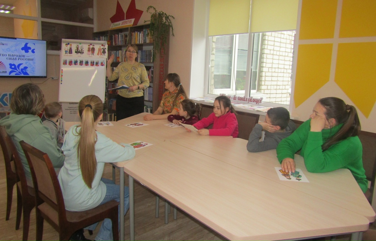 Аликовская центральная библиотека присоединилась к Всероссийской акции «Библионочь – 2026» в России она уже проходит 15 раз и посвящена Году Единства народов России. Главная тема вечера — «Единство народов – сила России!». Участниками мероприятия стали активные читатели библиотеки, для них была организована интеллектуально - развлекательная программа «Культурные традиции народов России».