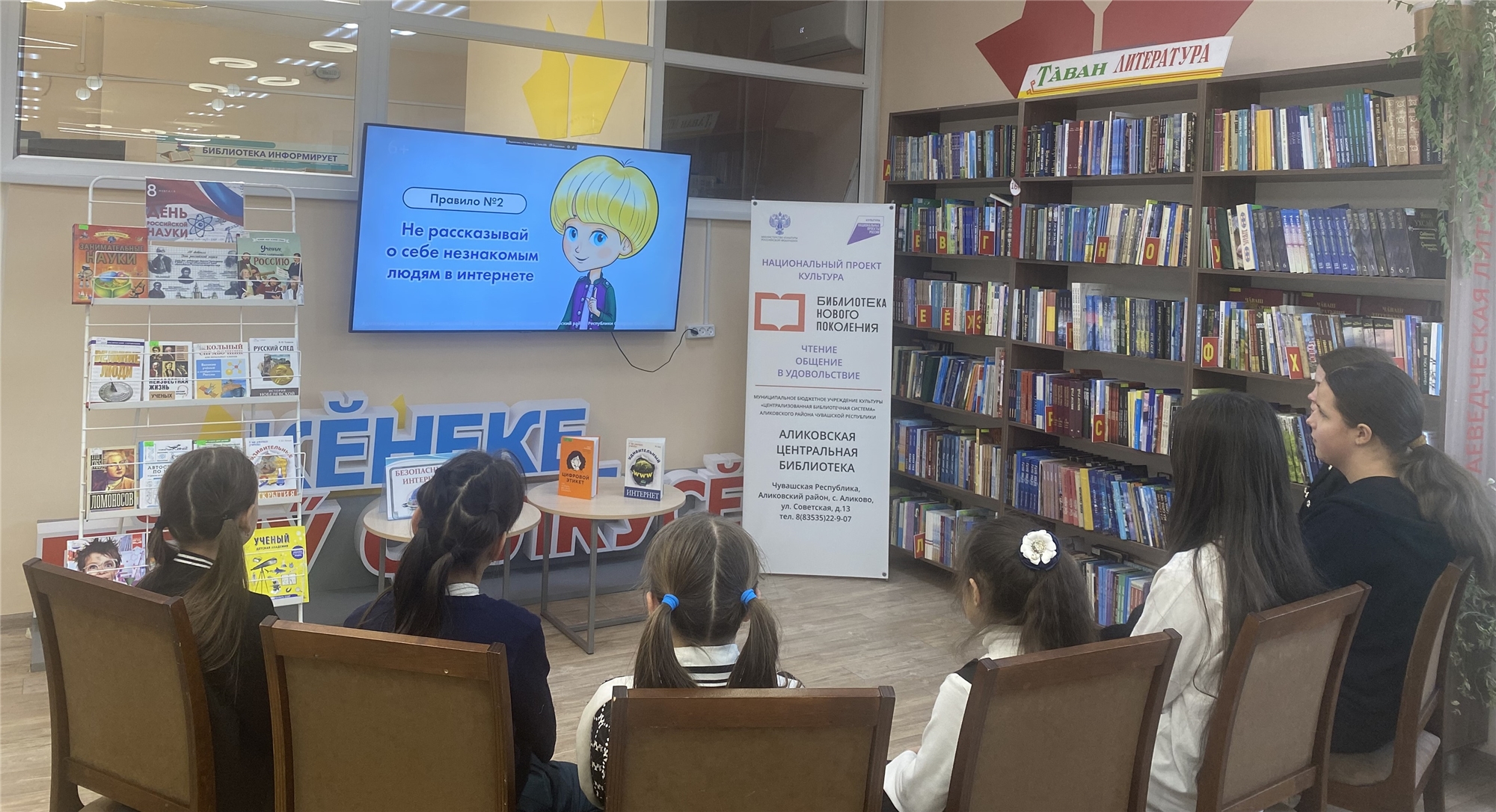 11 февраля в рамках республиканской недели безопасного Рунета в Аликовской центральной библиотеке провели урок безопасности «Мы – умные пользователи интернета». Сотрудники библиотеки рассказали юным посетителям о широких возможностях Всемирной паутины, сделав акцент не только на полезных и познавательных сторонах сети, но и на реальных угрозах, с которыми можно столкнуться в digital-пространстве. В ходе беседы участники подробно обсудили проблему интернет-зависимости, а также правила защиты личных данных и общения с незнакомцами онлайн. Для наглядности ребятам показали тематический мультфильм, который в доступной форме объяснил основы цифровой безопасности. Завершилось мероприятие веселой викториной, где ребята смогли проверить полученные знания и закрепить полезные советы на практике.