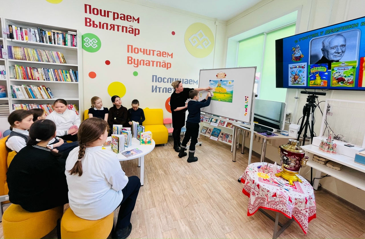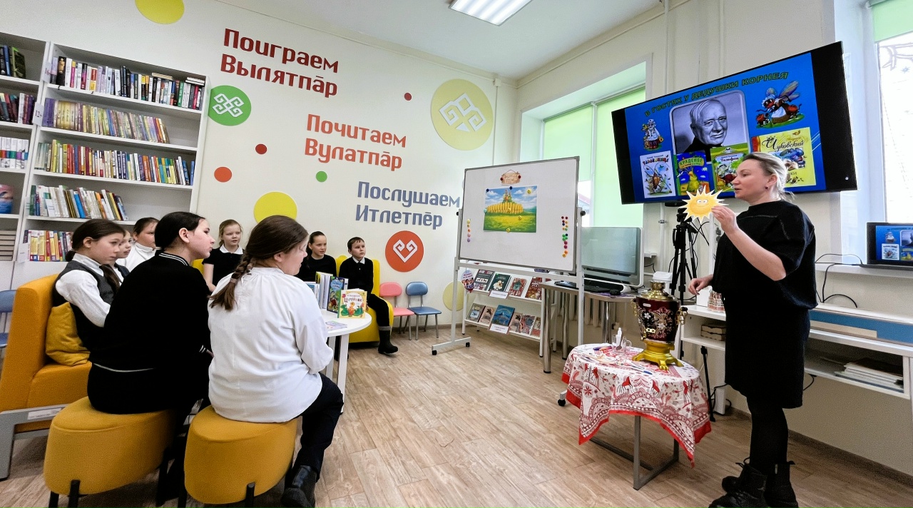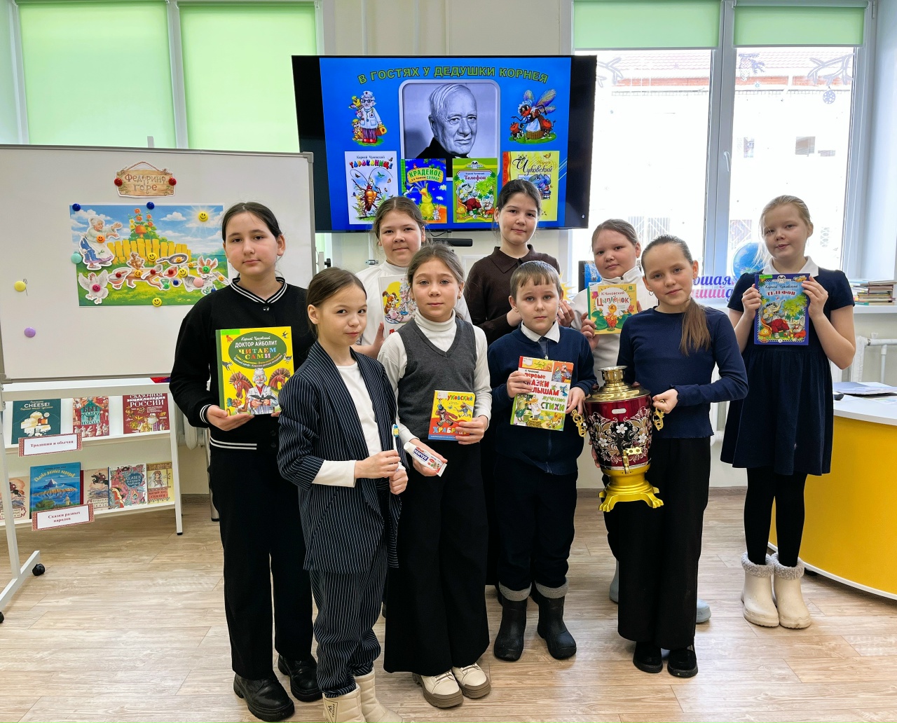 В рамках Недели детской и юношеской книги в преддверии знаменательной даты – 144-летия со дня рождения Корнея Ивановича Чуковского, которое мы будем отмечать 31 марта 2026 года, – в Аликовской детской библиотеке прошло увлекательное мероприятие. Четвероклассники Аликовской СОШ им. И.Я. Яковлева отправились в познавательное "Путешествие по сказкам Корнея Чуковского".????